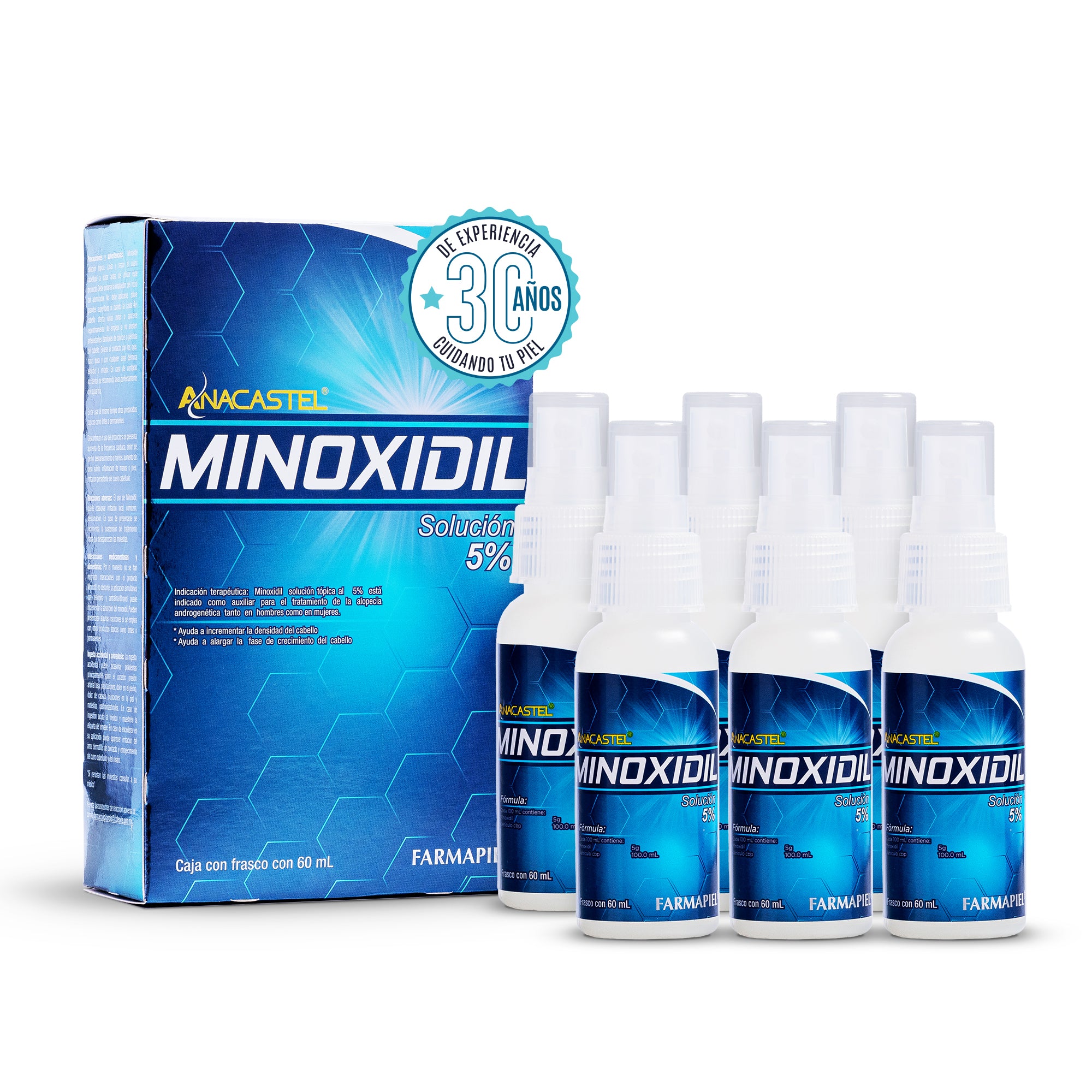 Anacastel Minoxidil 5% - Auxiliar en el Tratamiento Anticaída - 6 unidades - 60ml