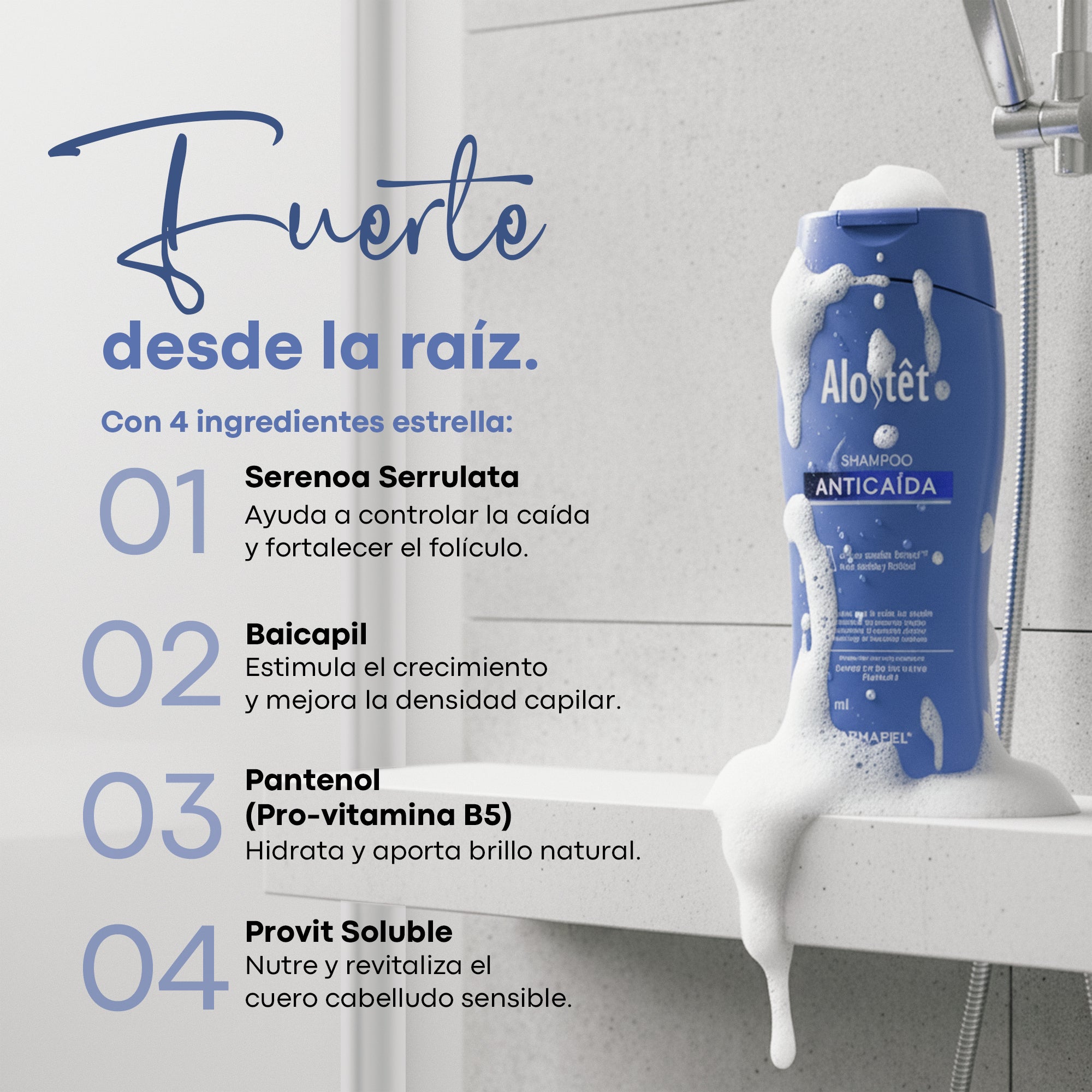 🌟 Alostêt Shampoo Anticaída con aroma clásico ayuda a fortalecer el cabello y contribuir con su apariencia. ✨