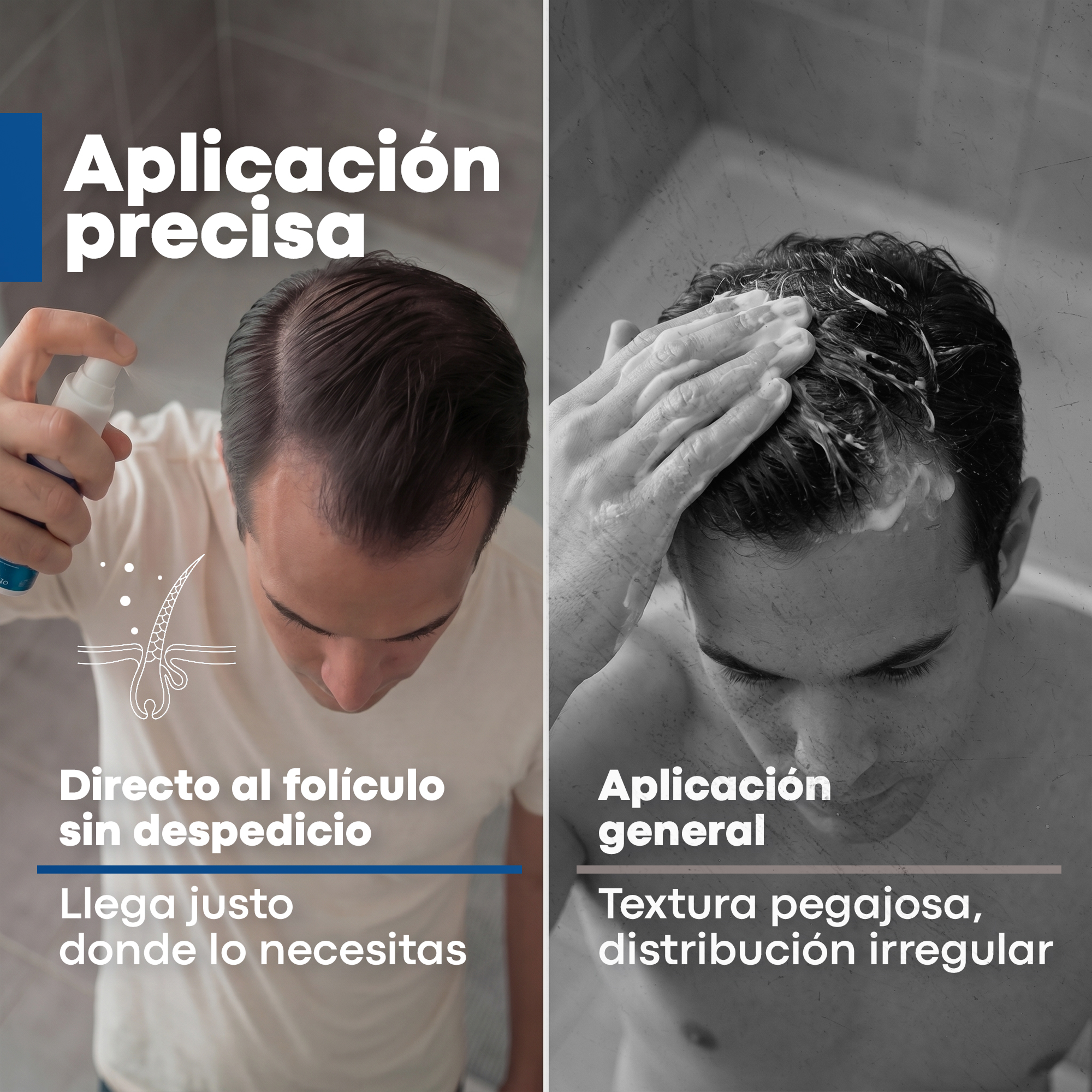 Disponible en formato de spray, lo que facilita su aplicación uniforme en el cuero cabelludo y las áreas afectadas.